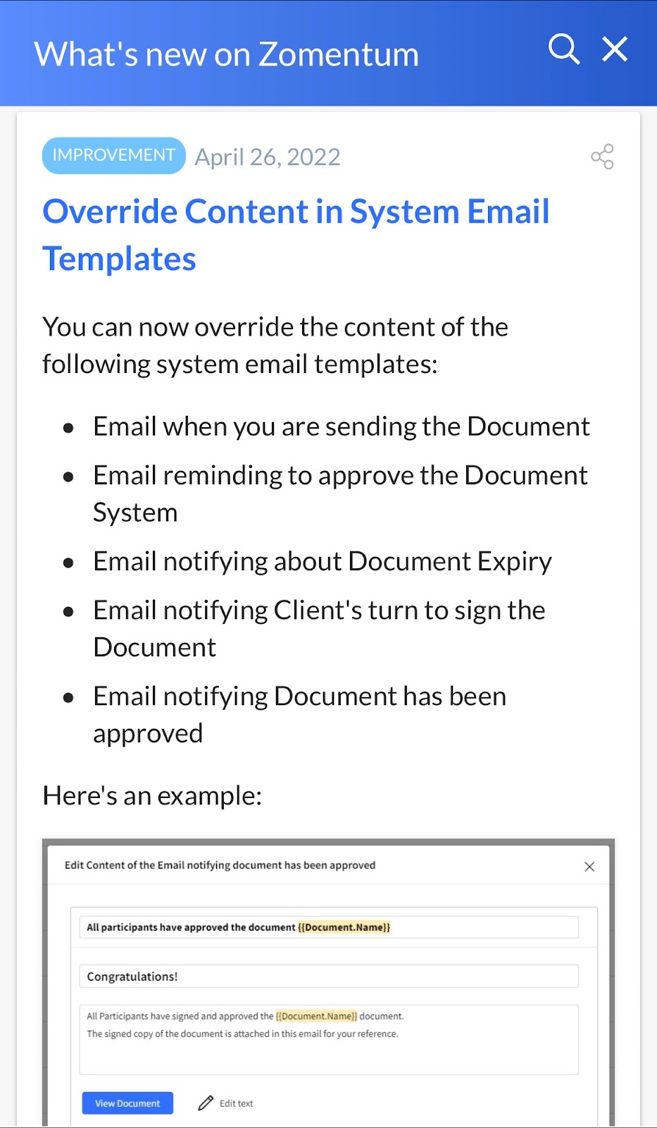 The mobile version gives users the opportunity to access key features of Zomentum on any handheld device. It is engineered for ease to manage your business and increase productivity on the go. Zomentum will continue to evolve the webapp overtime to deliver a fully native user experience. The current mobile version supports access to your Opportunities, Documents, Sales Activities, and Clients.